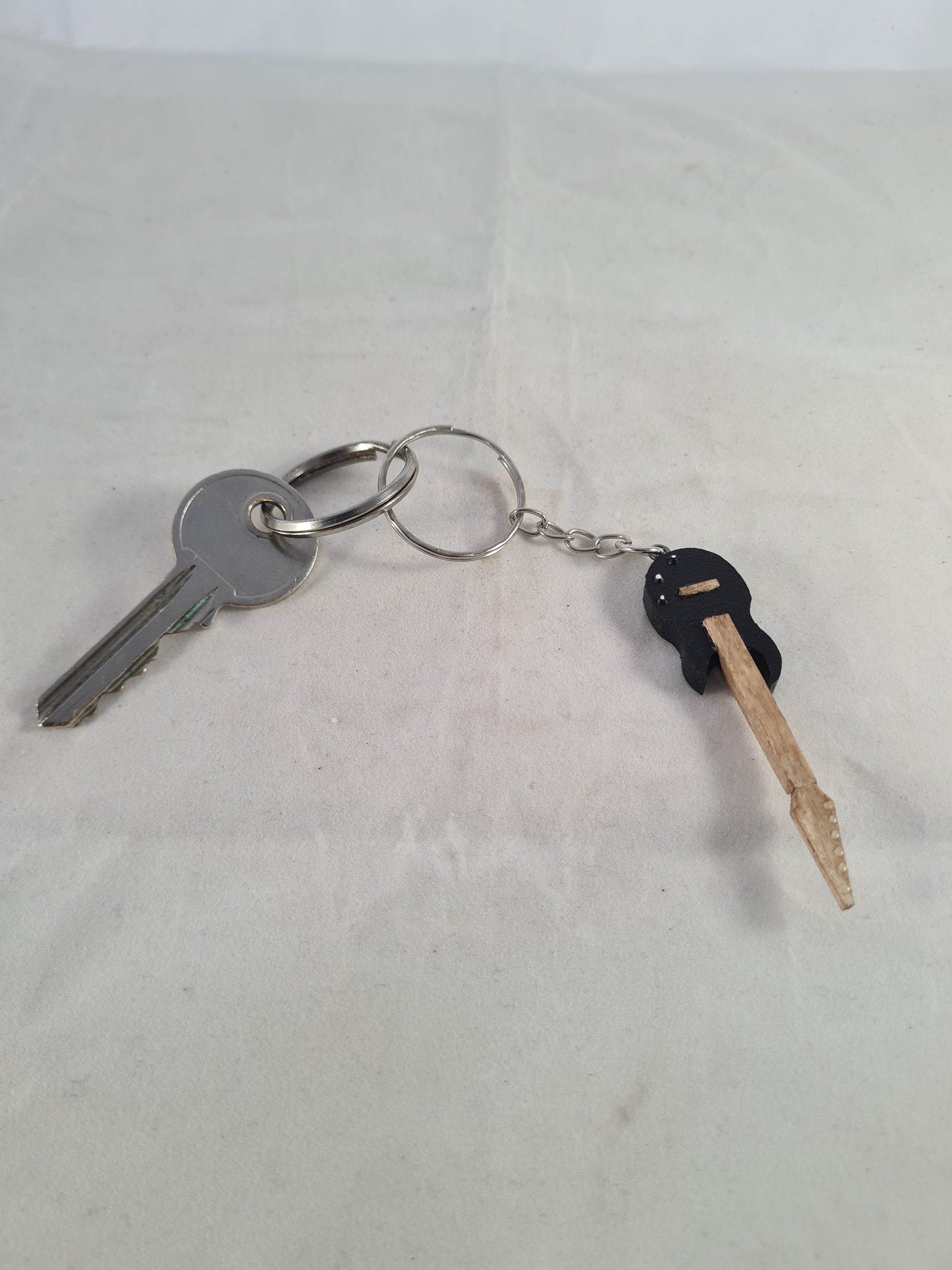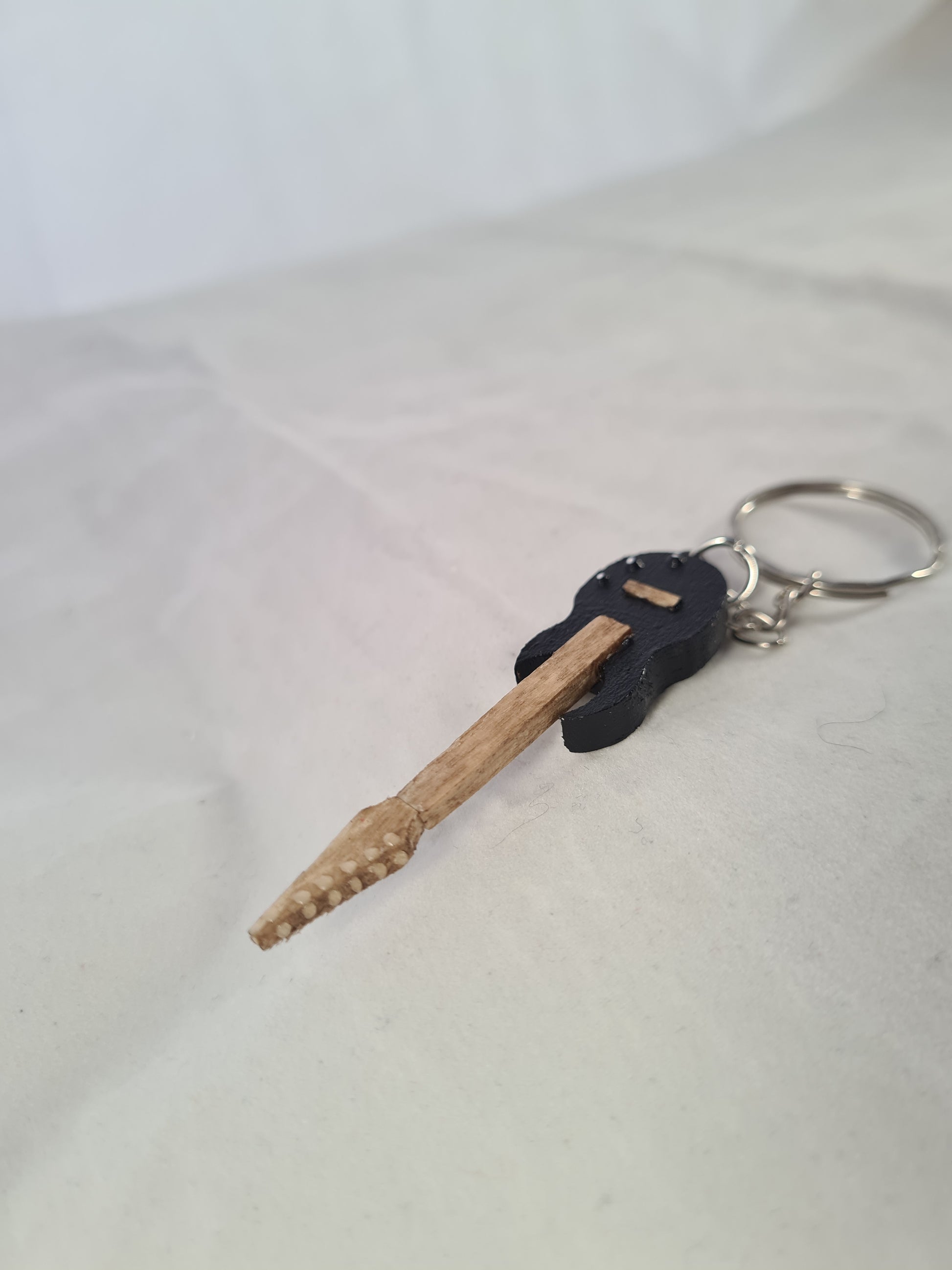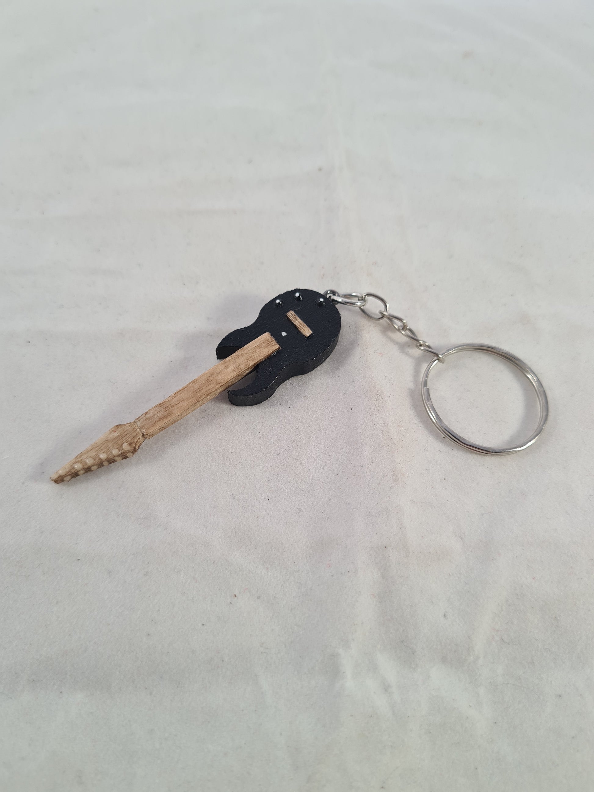 Black Electric Guitar Keyring/Keychain - Handcrafted Wooden Matchstick Figures - Gifts, Ornaments and Decor By Tiggidy Designs