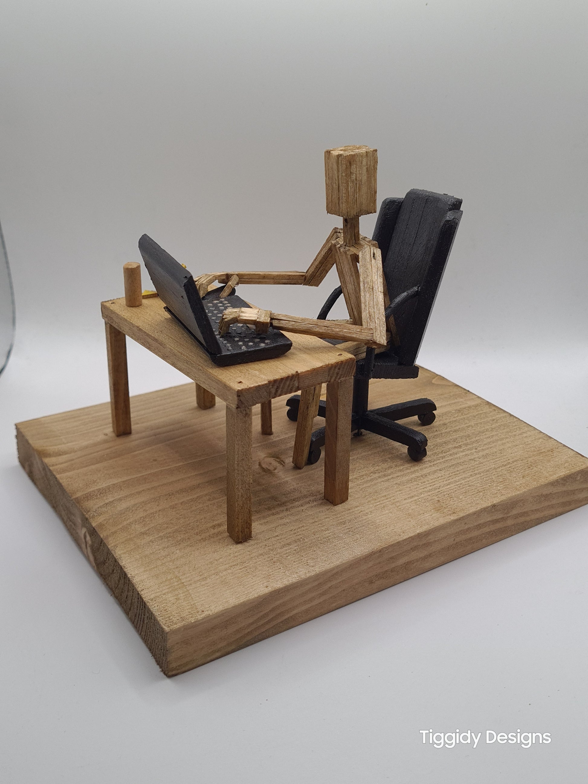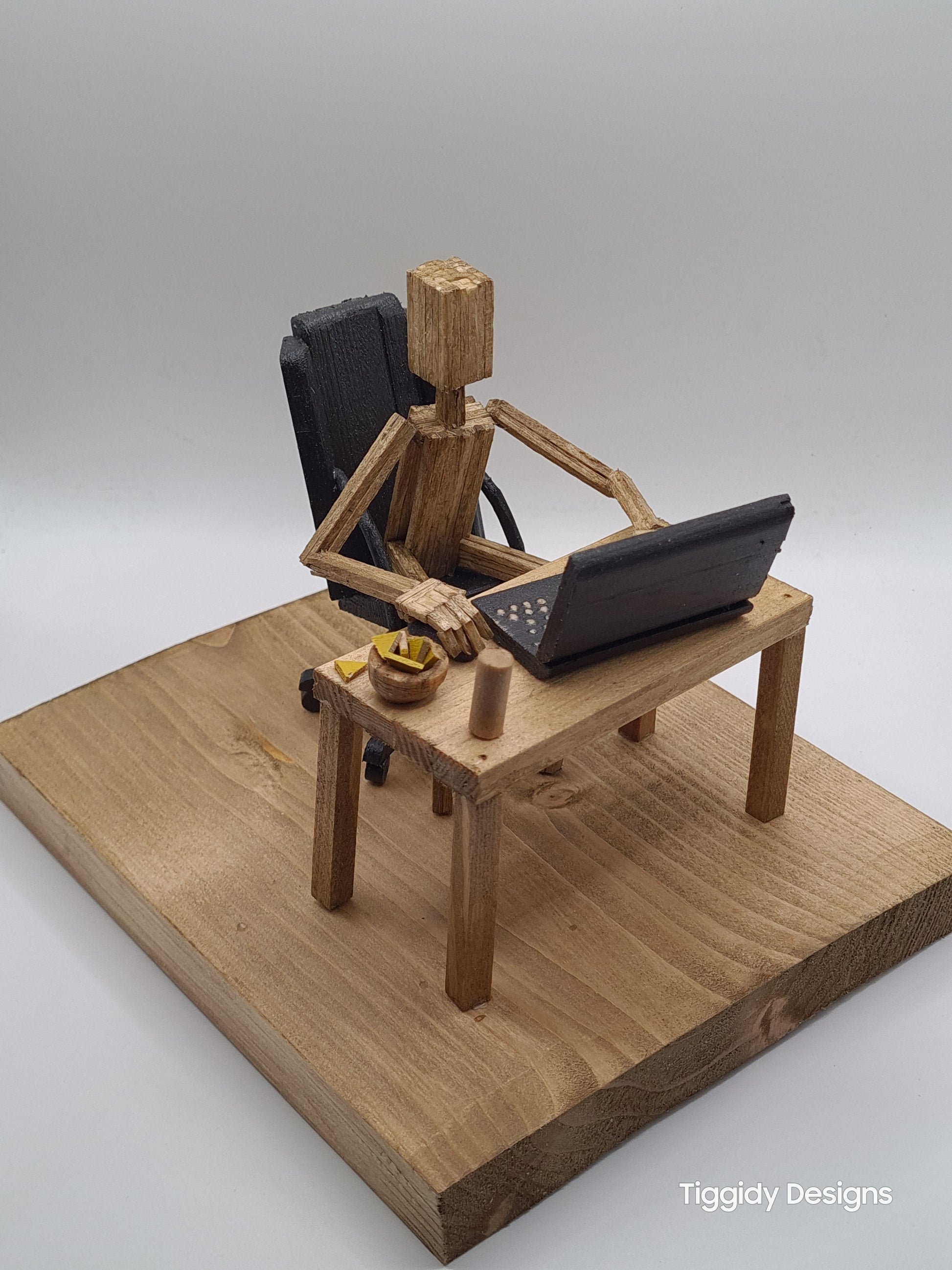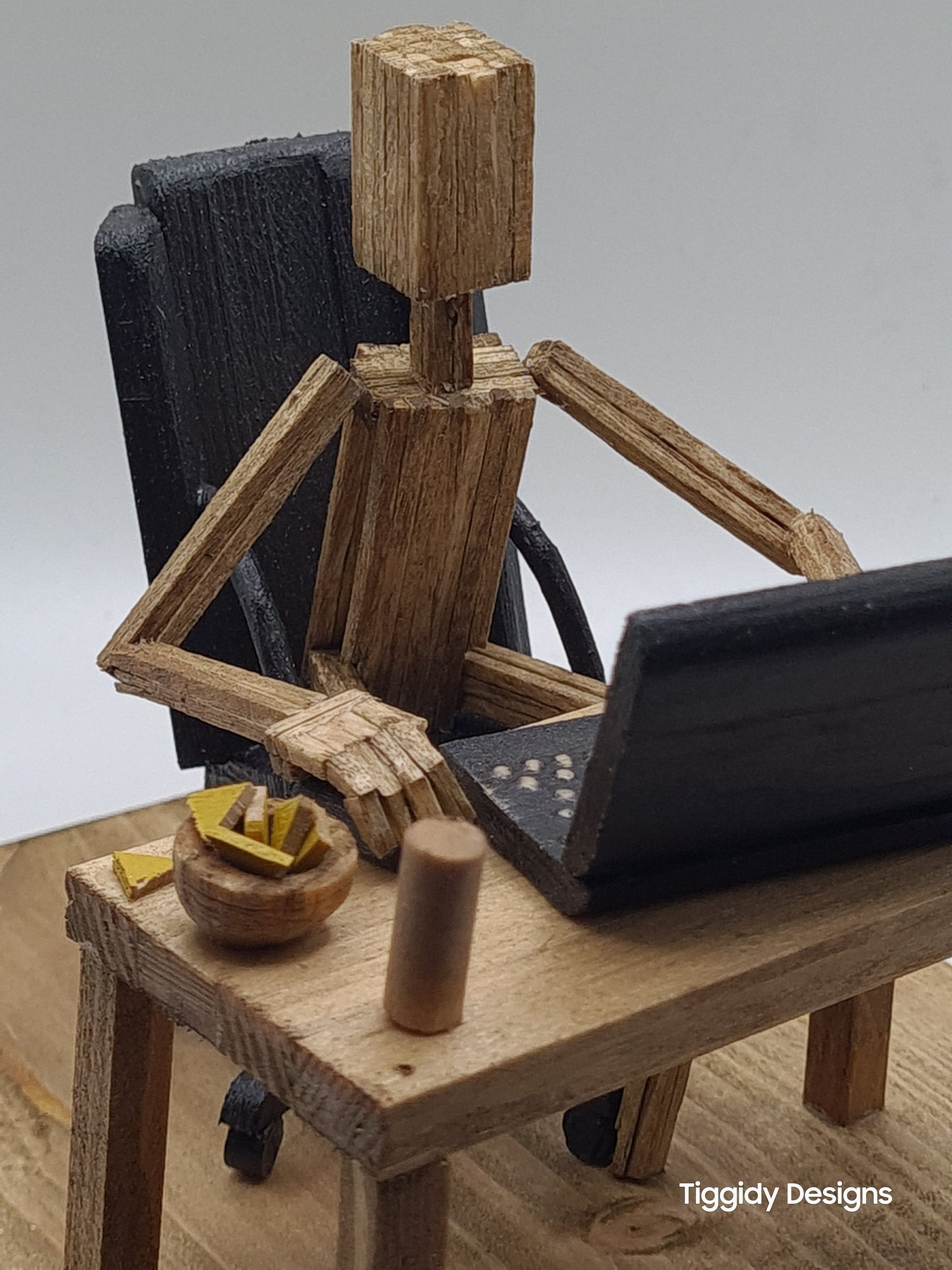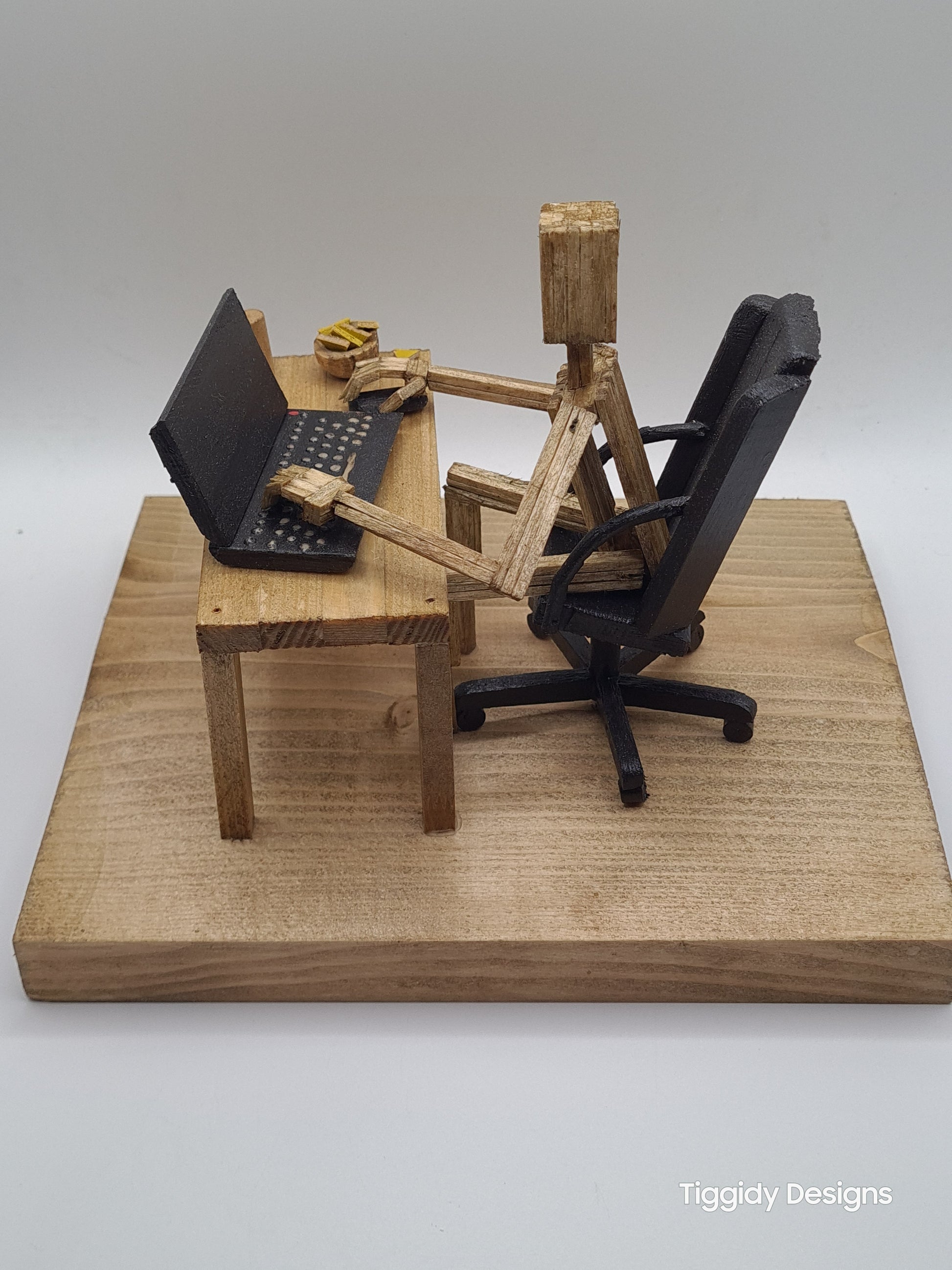 Laptop Gamer - Handcrafted Wooden Matchstick Figures - Gifts, Ornaments and Decor By Tiggidy Designs