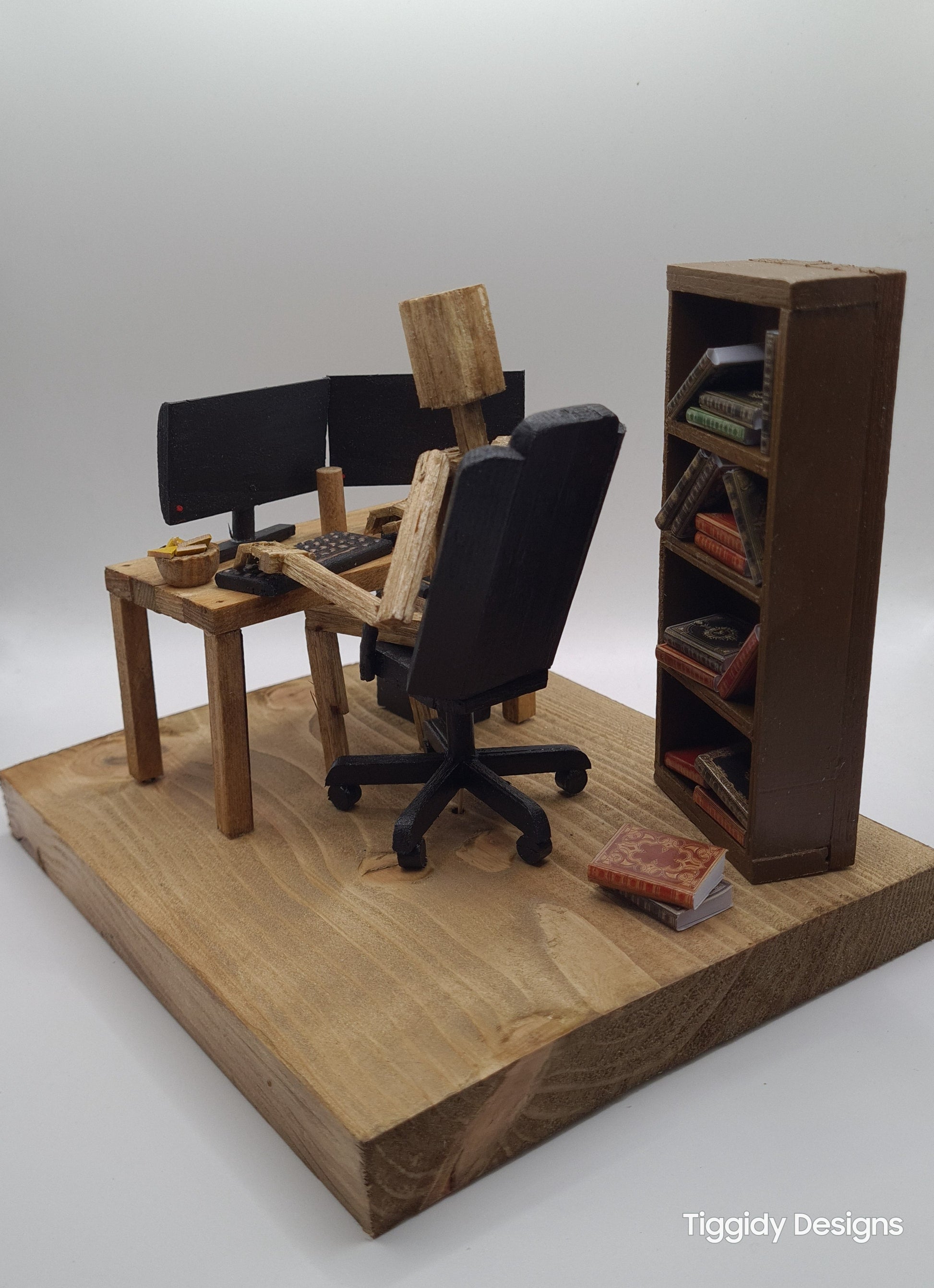 PC Gamer Dual Screen - Handcrafted Wooden Matchstick Figures - Gifts, Ornaments and Decor By Tiggidy Designs